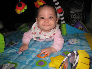 *Buttercup is now 7 months old, 18 pounds, and 27 inches long. (Note: photo is about two months old. I have yet to download about 200 photos from my digital.)The little Princess of All Things Diva is now scooting (so close to crawling!), and her smile melts my heart.