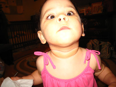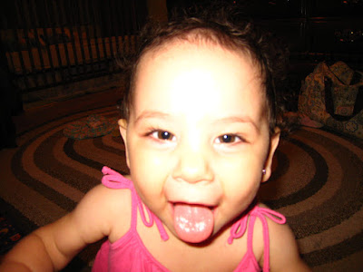 Remember people, she's 14-months TOMORROW and already has a mouth full of choppers. It's like 24-hour teething around here.